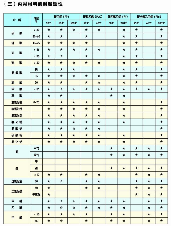 c. 耐腐蝕性能:除發(fā)煙硫酸、濃熱硫酸、硝酸等強氧化劑和90℃以下的酮、酯、胺類(lèi)以及高溫磺化劑外,能耐大多數有機酸及無(wú)機酸、氧化介質(zhì)、脂肪族的碳化物,醇類(lèi)和鹵素溶液的腐蝕。