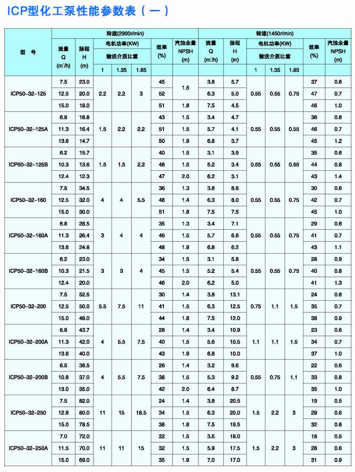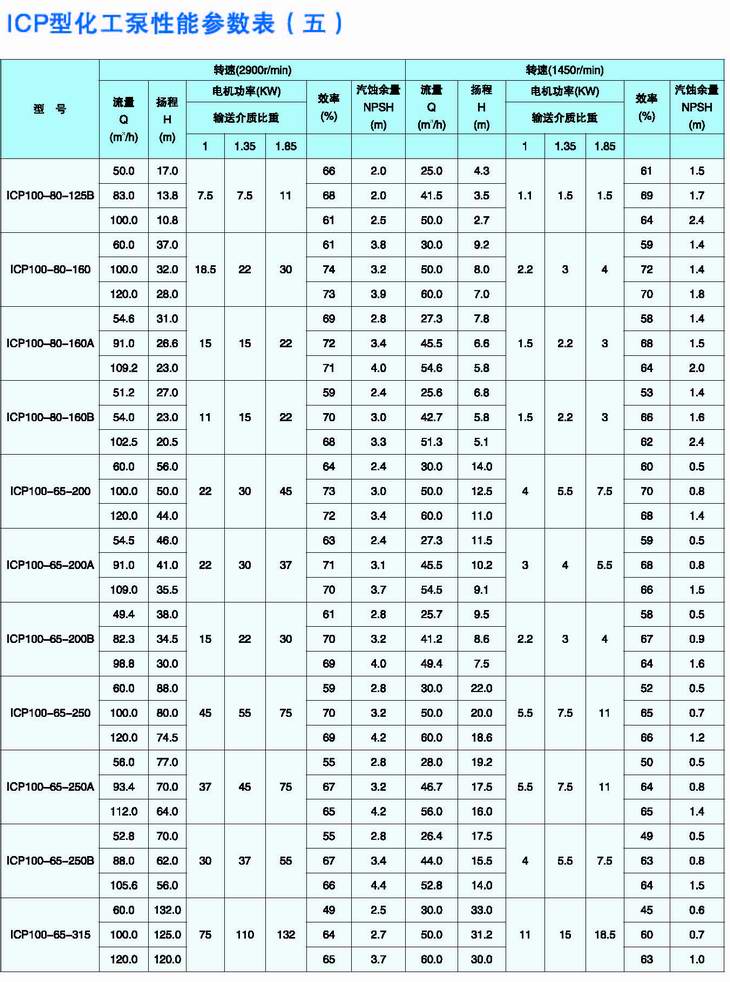 ICP型化工泵是綜合國外幾家著(zhù)名公司九十年代最新開(kāi)發(fā)的化工泵結構而設計的新一代化工流程泵,可與IH型泵和瑞士蘇爾壽公司CZ型化工泵互換,其運行極為可靠。根據用戶(hù)輸送介質(zhì)的不同,泵的過(guò)流部件材料有氟塑料、搪玻璃、各種奧氏體不銹鋼、金屬鈦、金屬鎳等,因此可廣泛用于輸送低溫、常溫或高溫腐蝕性介質(zhì),并允許含有一定量的固體顆粒,主要應用于化工、石油化工、煉油、冶金、輕工、醫藥等工業(yè)部門(mén)。 |